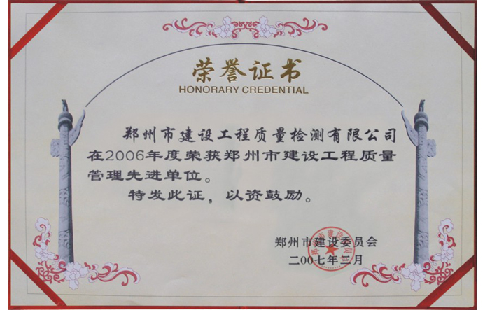 鄭州市建設工程質(zhì)量檢測有限公司前身鄭州市建設工程質(zhì)量檢測站,成立于1987年, 原隸屬于鄭州市城鄉(xiāng)建設管理委員會。2004年根據(jù)國家有關文件精神,鄭州市建設工程質(zhì)量檢測站改制更名為鄭州市建設工程質(zhì)量檢測有限公司(以下簡稱公司),注冊資本1000萬元人民幣,獨立法人企業(yè),主要從事建設工程質(zhì)量檢測、技術咨詢業(yè)務。公司為河南省質(zhì)量技術監(jiān)督局資質(zhì)認定(計量認證)合格單位及中國合格評定國家認可委員會實驗室認可單位,是中國認可國際互認質(zhì)量體系、職業(yè)健康安全管理體系、環(huán)境管理體系認證注冊資格單位,具有河南省建設廳核發(fā)的建設工程質(zhì)量檢測資質(zhì),是第...